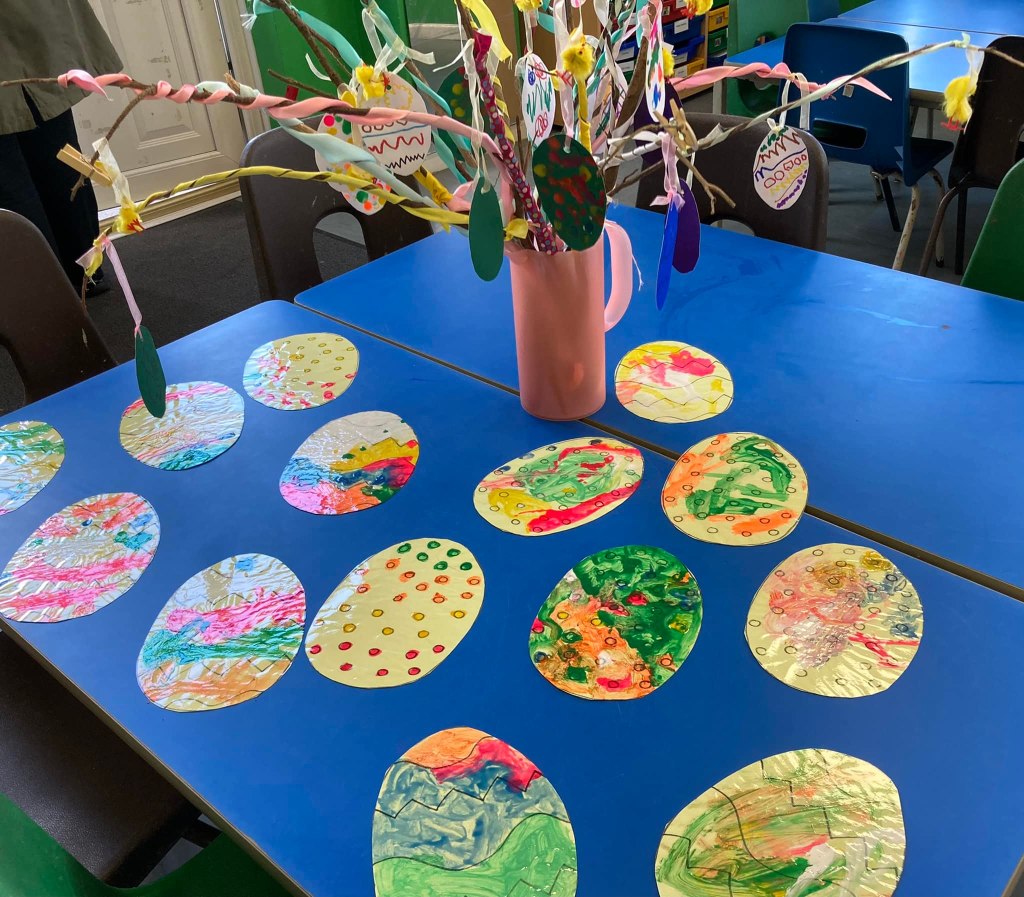When not outside relishing the spring sunshine, the children have been enjoying learning all about our weekly themes. We have had much fun creating pirate hats, pirate parrots and not forgetting trying to talk like a pirate. Celebrating Chinese New Year and getting ready for Easter.